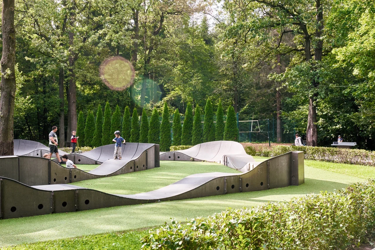 Парк назван в честь лыжницы, пятикратной олимпийской чемпионки Ларисы Лазутиной, которая жила в Одинцово. Именно она стала одним из инициаторов его создания.Главное достоинство этой части леса — асфальтированная трасса, по которой можно бегать, кататься на велосипедах и роликах (прокат находится у входа со стороны Одинцово)